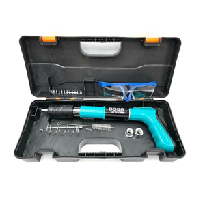میخکوب دستی چاشنی خور Boss امکان استفاده در بتن، پلاستیک، ورق های نازک فلزی، چوب و … را دارد. قابلیت استفاده میخ تا 5 سانتیمتر را دارد، کارکرد ساده و قوی دارد . بدون نیاز به چاشنی انفجاری جداگانه می باشد. بسیار سبک، کم حجم وقابل حمل می باشد. محصولی جدید و با تکنولوژی به روز جهت جایگزینی برای میخکوب های والتی، کامرکس و … می باشد. دارای کیف حمل، عینک، فرچه، فنر یدک می باشد تفنک میخکوب ابزاری است مشابه تفنگ بادی. تفنگ میخکوب بتن برای اتصال پلیت ها و صفحات مختلف به بتن می باشد. البته مصارف دیگری از جمله اتصال انواع توری های مشبک و غیره به صفحه های بتنی و مصالح ساختمانی را نیز دارد. این تفنگ ها به وسیله چاشنی میخ موجود در خان تفنگ را با شدت به سمت هدف شلیک کرده و واشری که بر روی میخ قرار دارد صفحه را بر روی بتن نگه می دارد. با قرار دادن چاشنی مخصوص در داخل دستگاه و قرار دادن میخ در محل تعیین‌شده، می‌توانید از این ابزار استفاده کنید. چاشنی‌هایی که برای این محصول در نظر گرفته‌اند در دو نوع و برای کوبیدن میخ در فلز یا بتن هستند. نوع میخی که برای این دستگاه مورد استفاده قرار می‌گیرد، از گونه‌های واشردار است. از این دستگاه در شغل‌های مختلف که با چوب و فلز سروکار دارند، استفاده می‌کنند.