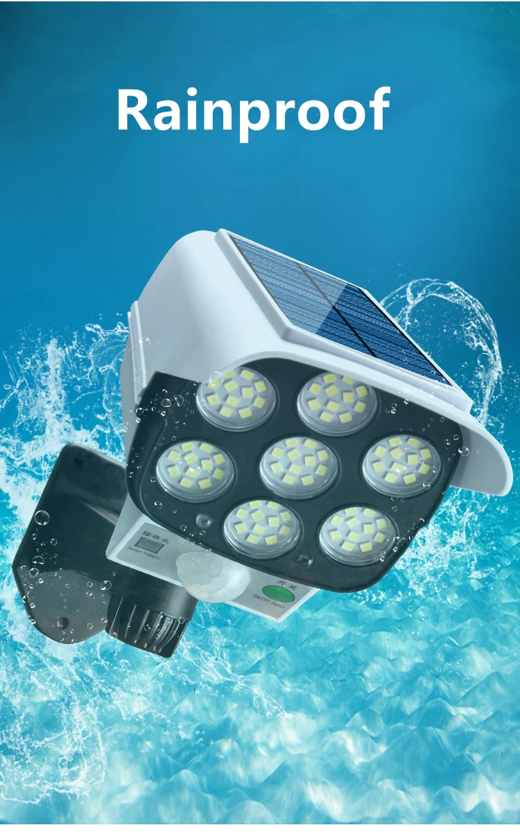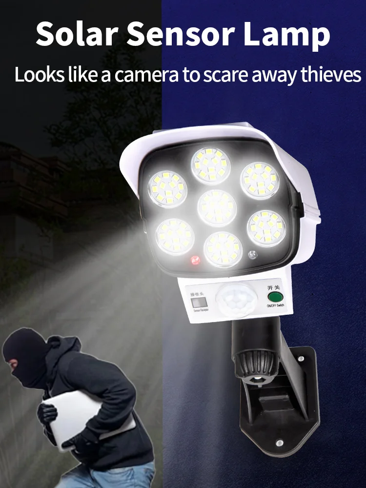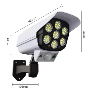 پروژکتور های خورشیدی طرح دوربین مدار بسته پروژکتور هایی هستند که حالت سیکوریتی دارند و حدودا بین 180 تا 200 وات نور تولید می کنند و شامل دو باتری لیتیومی 3.7 ولتی و پنل 3 واتی بزرگ هستند. دوربین های به کار رفته در این پروژکتور ها 2 باتری هستند و کیفیت بالاتری دارند در صورتی که دوربین های موجود در بازار به صورت تک باتری نیز وجود دارد. توانایی تابش 360 درجه دارند و پایه دارند. این نوع پروژکتور ها حتما باید زیر آفتاب باشند ولی در سایه نیز می توانند کار کنند اما نوری که ایجاد می کنند کمتر است و بازدهی کمتری دارند در این صورت باتری زودتر خراب می شود. بهتر است از این نوع پروژکتور ها در مکان های پر تردد استفاده شود. نور بسیار خوبی دارند و ارتفاع نصب آن ها بهتر است که بیش از 3 متر نباشد چرا که اگر سنسور PRD در ارتفاع بیش از 3 متر قرار گیرد حساسیت خود را از دست می دهد و قابلیتی که باید داشته باشد را ندارد. از روی پنل در این پروژکتور ها می توان متوجه خاموش یا روشن بودن آن شد به این صورت که  مدار هایی درون آن وجود دارد که با تغییر ولتاژ از پنل و صفر شدن پنل، شب شدن یا تاریک شدن تشخیص داده می شود یعنی سنسور پتانسیلی دارند و همچنین دارای ریموت هستند. این نوع از پروژکتور ها را می توان زمان بندی کرد. این پروژکتور ها از پر فروش ترین جنس ها هستند.این یک لامپ دیواری خورشیدی با طراحی ظاهری دوربین مداربسته شبیه سازی است که می تواند در مکان های مختلف مانند دروازه ، راهرو ، حیاط و غیره نصب شود.