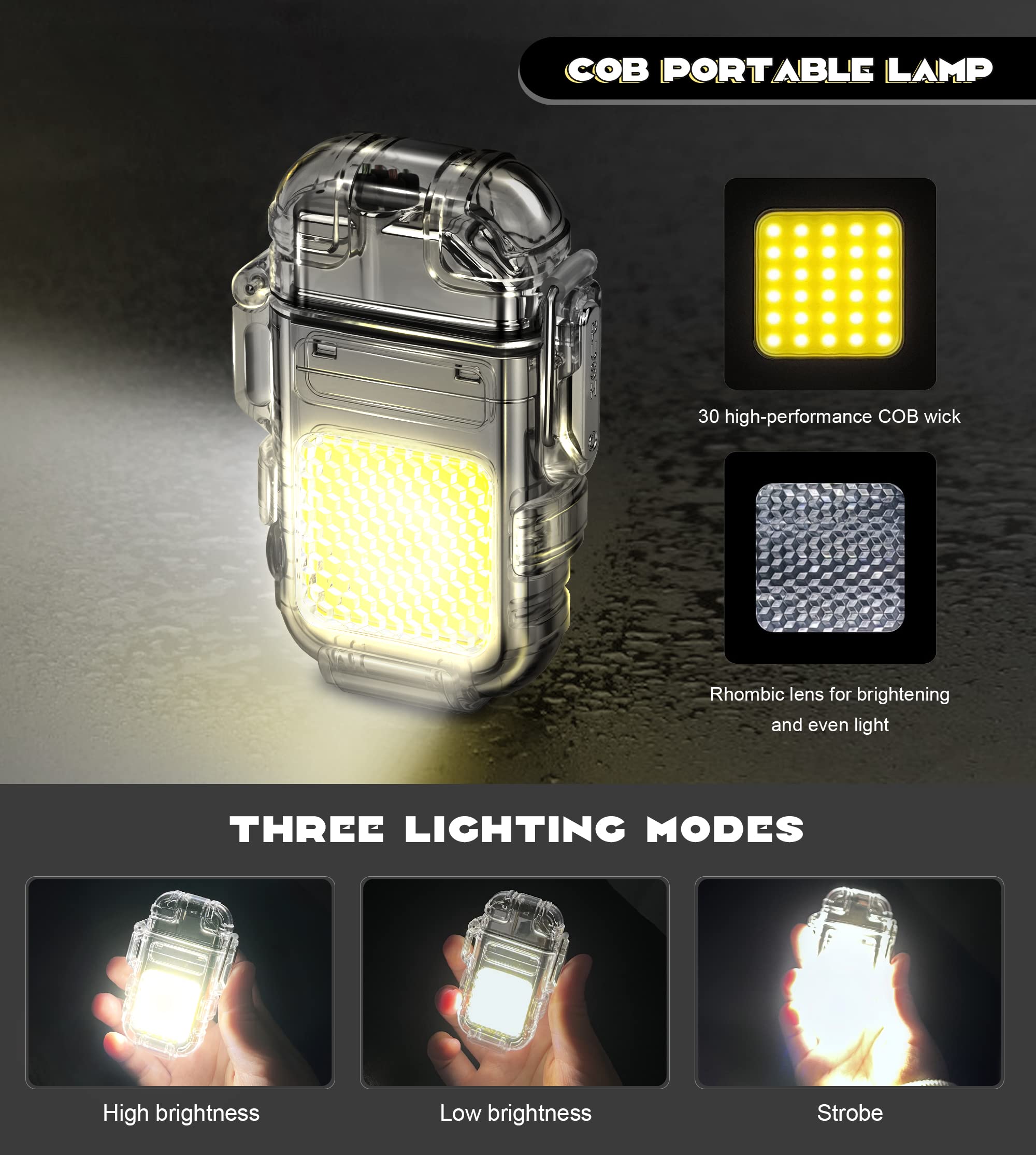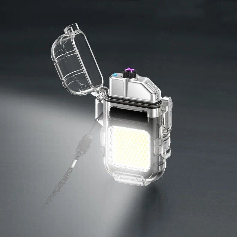 این مدل فندک بدون شعله است و نیازی به سوخت (گاز) ندارد. به همین خاطر استفاده از آن بسیار راحت است و کاربرد بیشتری نسبت به فندک معمولی دارد. در واقع منشا تولید حرارت در فندک پلاسما شبیه به قوس الکترونیک است؛ با حرارت پایین تر، که توانایی بالاتری در روشن کردن دارد و در هنگام وزش باد نیز قابل استفاده است و خاموش نمی‌شود. فندک الکتریکی (شارژی) چراغ قوه دار هدیه ای ارزنده و زیبا برای افرادی که دنبال محصولات لاکچری هستند. ویژگی منحصر به فرد این فندک ضدآب بودن آن است. یک پوشش پلاستیک محکم شفاف روی کل بدنه محصول قرار گرفته که نه تنها زیر باران، بلکه داخل آب (استخر، دریا و …) نیز قابل استفاده است. شما با خرید این محصول جذاب نه تنها صاحب یک فندک کاربردی خواهید شد بلکه یک چراغ قوه کوچک جیبی را نیز از آن خود خواهید کرد! روی بدنه این فندک یک چراغ COB سه حالته تعبیه شده که با دکمه پاور بغل آن روشن و خاموش می‌شود. (حالت نور کم، نور چشمک زن و نور زیاد)این فندک پلاسما یک فندک ضد آب و ضد باد است که می توانید در مواقع اضطراری به آن اعتماد کنید. روزهایی که باید نگران خشک نگه داشتن کبریت ها یا خاموش شدن شعله فندک های معمولی باشید، گذشته است. فندک الکتریکی (شارژی) چراغ قوه دار می تواند به طور مداوم قوس پلاسمای آتش را حفظ کند، حتی از حین بادهای 80 مایل در ساعت. با یک قاب بیرونی بادوام، مهر و موم حلقه فلزی و یک قفل، دیگر نگران ورود آب و خراب شدن این فندک قوس الکترونیک نخواهید بود. صرف نظر از اینکه از آن برای راه‌اندازی آتش در حیاط خلوت، کمپینگ یا چیزهای ضروری تر مانند شرایط بقا یا اضطراری استفاده می کنید، یک فندک قابل اعتماد خواهید داشت که می تواند در حال حرکت نیز شارژ شود.