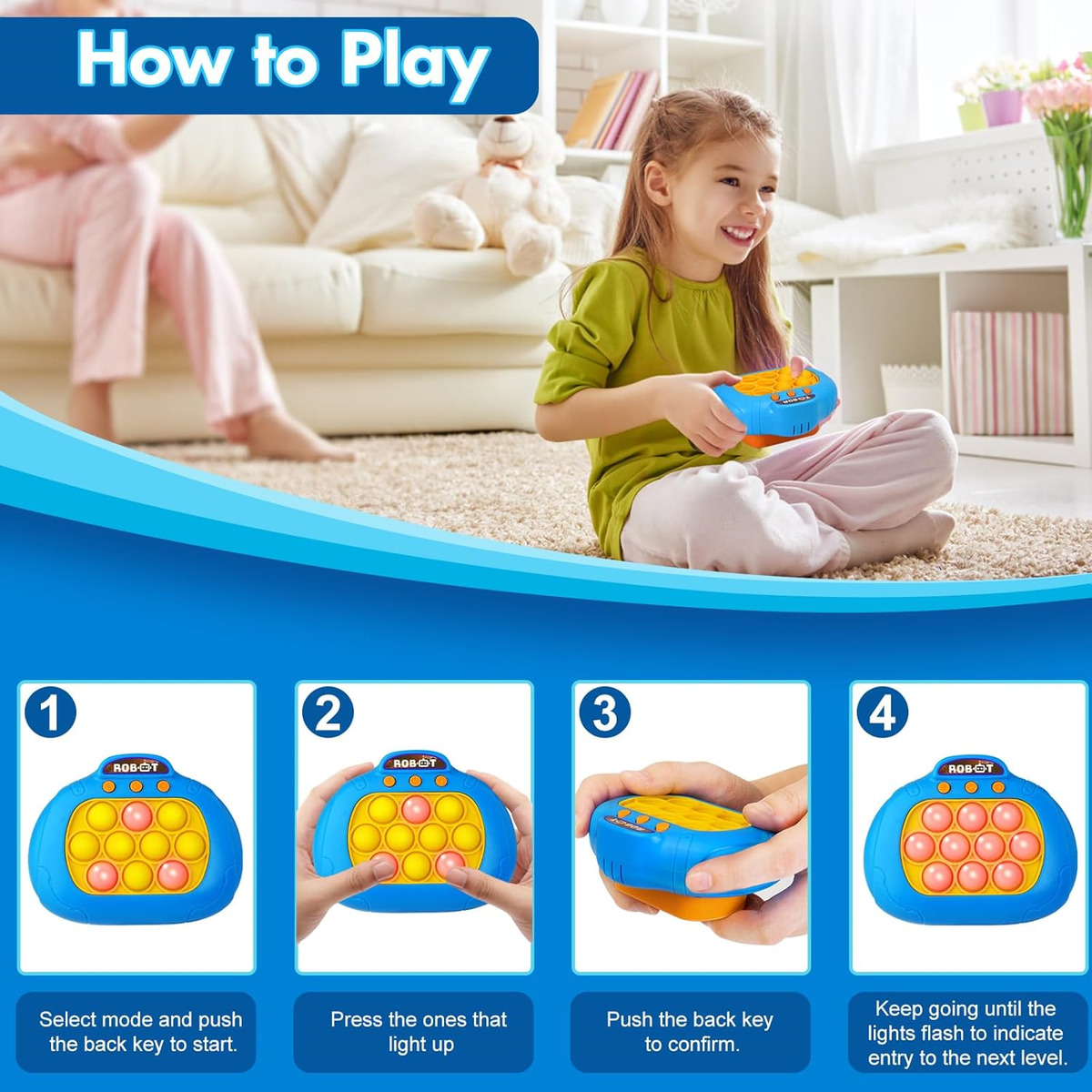 کنسول بازی پاپت گیم یک بازی مهیج سرعتی حرکتی است که علاوه بر سرگرمی برای درمان استرس و اضطراب بسیار کاربردی است . اگر از آن دسته از افرادی هستید که زیاد با موبایل کار یا بازی می کنید ، این بازی می تواند جایگزین بسیار مناسبی برای موبایل باشد . همچنین اگر در طول روز تحت تاثیر فشار و استرس های ناشی از کار قرار گرفتید ، می توانید تنها با این کنسول حال و هوای خود را عوض کنید. این بازی جزء دسته ی بازی های هوشی حرکتی قرار می گیرد که محدودیت سنی ندارد و از کودکان بالای 3 سال تا بزرگسالان نیز می توانند از آن استفاده کنند . مزیت های کنسول بازی پاپت گیم: سرعتی که برای فشار دادن دکمه ها استفاده می کنید باعث هماهنگی بین چشم و دست و همینطور تقویت دست ورزی می شود . این قابلیت برای کودکان دبستانی ، مخصوصا کلاس اولی ها بسیار ضروری است و تقویت انگشت ها باعث دست گرفتن بهتر مداد و عملکرد بهتر در درست کردن کاردستی و … نیز می شود . هنگامی که پوینت های قرمز را می بینید و آن ها را به خاطر می سپارید ، باعث تقویت حافظه و همچنین با به چالش کشیدن شما باعث افزایش توانایی حل مسئله می شود .